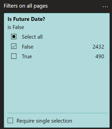 It's annoying when you create a chart and the x-axis goes off into the future when you don't want it to. Filter them out using the Is Future Date column set to false.